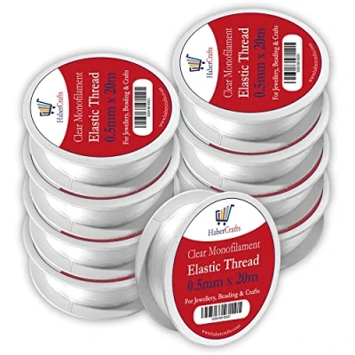 Habercrafts Clear 0.5mm X 20 Meters Elastic Nylon Thread Is Strong, Durable And Nearly Invisible Elastic Fibre, That’s Perfect For Jewellery Making, Crafts, Decorations, And Projects That Need A Little Stretch Or Bounce Made From A Stretchy Elasticated Nylon Fibre Which Allows The Wire To Easily Stretch, Making It Easy And Comfortable To Wear Whilst Still Being Strong & Keeping Its Shape. Finish Your Bracelet With A Reef Or Surgeons Knot, Or Seal With Heat Or A Clear Nail Polish Or Glue To Prevent The Knot From Slipping. Perfect For Jewellery, Necklace & Bracelet Making, Sewing, Beading, Balloon Arches, Hanging Ornaments, And Making Floating & Bouncing Decorations Whether Its Christmas, Halloween Or Any Special Occasion. Each Spool Contains A Massive 20 Meters And Is Designed With 2 Gaps Under The Sticker, To Hold The End Of A Thread So You Can Easily Start Where You Left Off With No Tangles Or Messes. Available In The Full Range Of Widths & Strengths (0.5mm, 0.8mm & 1mm) In Packs Of 1 (20 Meters), 5 (100 Meters) And 10 (200 Meters) For The Best Price No Matter The Size Of The Project.