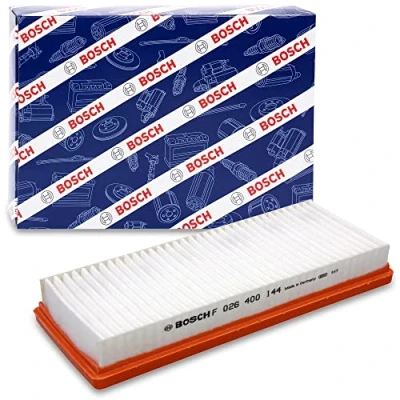 Helps prevent air leakages: With matching seals and a precise fit, the filter blocks contaminants and avoids annoying leaks High tensile strength and resistance to moisture: Thanks to the filter media properties, the filter can withstand exposure to humidity without losing its effectiveness or structural integrity Built to last: The flat panel design ensures even airflow and maximum surface contact, giving the filter excellent dust-holding capacity and durability High standards: The dust holding capacity, filtration efficiency plus all function and quality tests are performed in accordance with international standards Works under tough conditions: The air filter withstands heat and pressure Compatibility: Use the vehicle identification number in the parts' search function to find the right air filter for your vehicle Installation: All assembly work should be carried out by trained professionals Scope of delivery: 1 Bosch S0144 Air Filter - Packaging dimensions: Height 34.5 mm, Length 270 mm, Width 112 mm