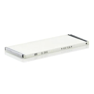 MANN-FILTER Cabin Air Filter CU 2916 / Dimensions (mm): A = 277; B = 117; H = 13 / Premium Filter in Original Equipment Quality High-quality MANN-FILTER cabin filters offer almost 100% protection against particles such as pollen, diesel soot and tyre abrasion - for a feel-good climate in the vehicle interior and protection of the air conditioning system Exact fit and perfect tightness ensure constant filtration performance during the entire service interval / Optimum vehicle interior ventilation due to the high air flow capacity Looking to find the correct filter? Select: brand, model, vehicle type, and engine type above to see which one fits your vehicle MANN+HUMMEL complies with REACH-regulation + supports the goal of Improved health and safety through the design, manufacturing, usage, disposal and recycling of our products