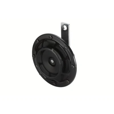 Black housing, black protection grid and black holder, made of galvanised metal Sound pressure level at 2m distance: 118 dB(A); power consumption: 24V, 84W Holder for fixing screw M8 Operating temperature: -40 °C to 90 °C (-40 °F to 194 °F) With 6.3 mm tab terminals, open; approval: ECE Temperature range from: -40°C - Temperature range to: 75°C - Frequency Range: 500Hz - Power consumption: 84W Ø: 123mm - Width: 125mm - Overall Height: 135mm - Depth: 85mm Inspection Tag: E1 0414 Diameter [mm]: 123 Width [mm]: 125 Colour: Black Overall Height [mm]: 135