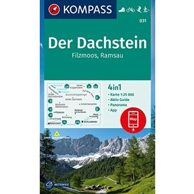 031 der DACHSTEIN RAMSAU FILZMOOS: 4in1 Wanderkarte mit Panorama und Aktiv Guide inklusive Karte zur offline Verwendung in KOMPASS App. Fahrradfahren. Skitouren. Langlaufen.