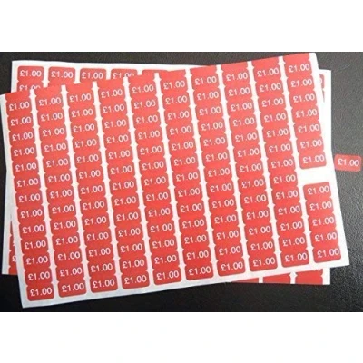 £1.00 White on Red 17.8x10mm Price Promotional Display Stand Point of Sale Stickers Self Adhesive Labels