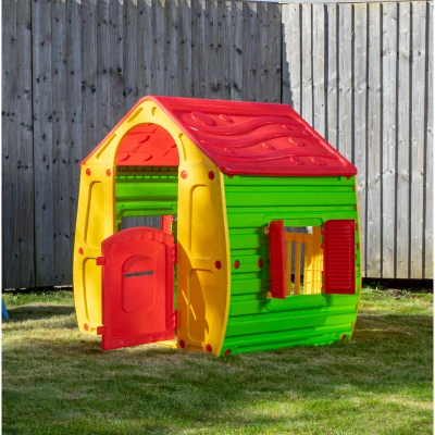 General description Keep the kids entertained with this Yellow and Red Magical Playhouse. Playhouses contribute to the mental and physical development of children while providing a safe environment that encourages creativity, imagination, and exploration. This playhouse can be enjoyed all year round, whether placed in the back garden for outdoor fun or indoors during rainy days. It will provide hours of endless fun and stimulate your child's imagination, giving them a special place to entertain friends. Technical specifications Height: 109 cm Width: 90 cm Depth: 102 cm Material: Strong, durable plastic Recommended age: Suitable for 12 months+ Installation Supplied flat packed for easy assembly No tools required for assembly Usage Can be used indoors or outdoors Easy to maintain; simply wipe with a damp cloth