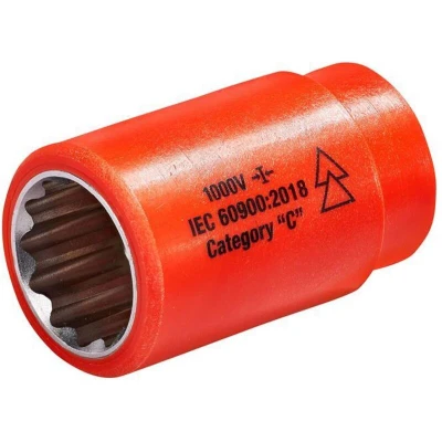 1 x ITL Insulated 1/2in Drive Socket 19mm. The ITL Insulated 1/2in Drive Sockets are fully insulated and exceeds international standards. They have a lifetime guarantee on both the tool and insulation. Each socket is manufactured from injection moulded nylon thermoplastic, and are 100% tested to IEC60900, Category C and ASTMF1505. They are designed to withstand extreme impact, abrasion, and are flame retardant. ITL tools are 100% tested using 1000 volts for 3 minutes submerged in water. They are Category C Impact Tested for operation within a greater temperature range -40ºF to ;158ºF, -40ºC to ;70ºC. 19mm