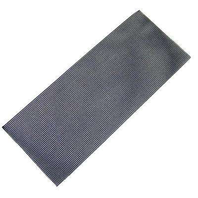 General description These 1/2 size mesh sanding sheets are made from durable silicon carbide, suitable for various sanding tasks. They are commonly used by tradesmen, especially in the dry-lining industry. The sheets can be tapped to remove clogged debris, allowing for re-use. Technical specifications Material: Silicon carbide Size: 115 x 280mm Fixing method: Plain Grade: Assorted Compatibility and accessories Compatible with orbital sanders and other sanding tools that accept mesh sheets No additional accessories required for use Installation Attach the mesh sheet to the orbital sander or compatible sanding tool following the manufacturer's instructions Ensure the sheet is securely fixed before operation Usage Use for sanding surfaces, smoothing, and finishing tasks Tap the sheet to remove clogged debris and extend its lifespan Other information