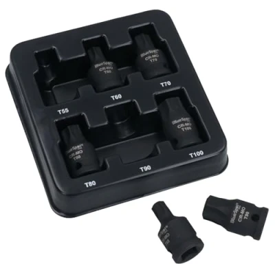 1/2in Drive Impact Impacted Male Torx Star Bit Sockets Stubby T55 T100 6pc Set
