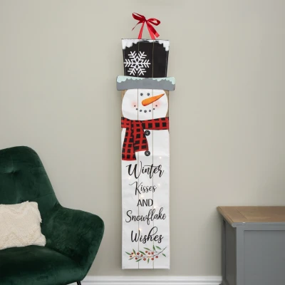 Add a cosy, whimsical charm to your festive decor with this 1.2m Lit Snowman Fabric Banner. Perfect for brightening up your home during the colder months, this eye-catching fabric banner brings both light and joy to any indoor space, making it perfect for family spaces, entryways, or cosy corners.. Featuring a cheerful snowman design and the heartwarming slogan “Winter Kisses and Snowflake Wishes.” this banner adds a sentimental touch to any festive display. The star of the banner is an adorable snowman wrapped in a winter scarf and hat, set against a soft, seasonal background. Softly glowing warm white LEDs are embedded in the fabric to create a gentle, ambient light that highlights the snowman, ideal for adding subtle sparkle without overpowering your space. Powered by 2 x AA (batteries not included) to give the freedom to hang it wherever you like without needing to be near a plug socket.. Suitable for indoor use only.. Product Specifications. Warm White LEDs. Height: 120cm Width: 32cm. Requires 2 x AA Batteries