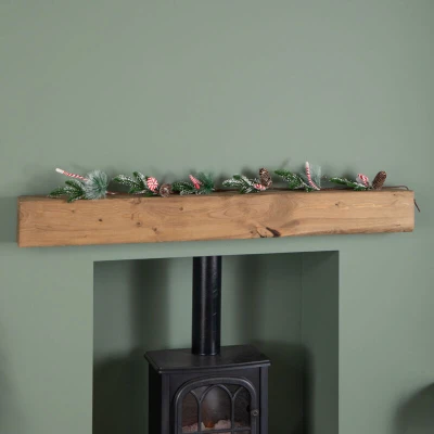 Add a touch of sweetness and sparkle to your festive decor with this 1.3m Candy Swirls Christmas Garland. Brimming with traditional charm and playful detail, this beautifully designed garland is the perfect way to bring warmth, colour, and festive cheer into your home.. Crafted with green seasonal foliage, this garland is generously adorned with red and white candy canes and frosted pinecones, creating a wonderful balance of classic and whimsical Christmas style. Measuring 130cm in length, it’s ideal for decorating mantelpieces, staircases, shelves, or door frames. Whether used alone or paired with matching wreaths and decorations, this garland instantly transforms any space into a cosy festive setting.. Suitable for indoor use only.. Product Specifications. Height: 5cm Length: 130cm Width: 10cm