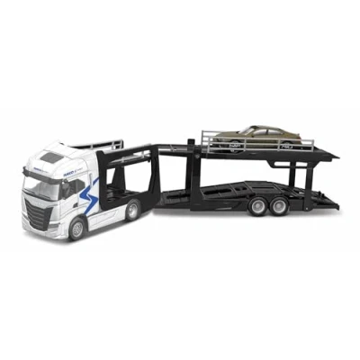 AUTHENTIC IVECO S-WAY DESIGN – Highly detailed replica of the Iveco S-Way car transporter, featuring realistic cab styling and multi-level vehicle carrier trailer. DIE-CAST METAL CONSTRUCTION – Made with durable die-cast metal and quality plastic parts for long-lasting play and collectible display. MULTI-CAR CARRIER TRAILER – Includes a double-deck transporter capable of carrying multiple model cars, enhancing realistic play value. 1:43 SCALE MODEL – Perfectly scaled for compatibility with other 1:43 die-cast vehicles; ideal for collectors and children alike. GREAT GIFT FOR VEHICLE FANS – Excellent gift for kids ages 3+, truck enthusiasts, and die-cast vehicle collectors., Manufacturer: May Cheong