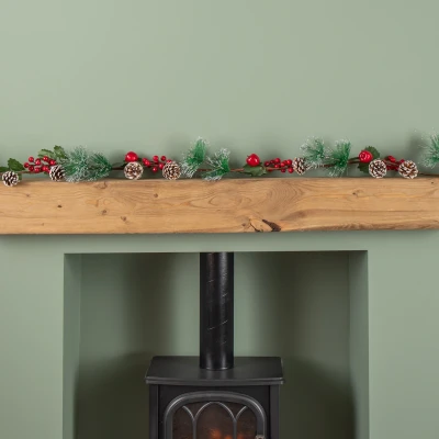 Bring the warmth and wonder of the festive season into your home with this 1.5m Christmas Berry Garland with Pinecones. Beautifully crafted to add traditional charm and a touch of winter sparkle to your holiday decor. Whether placed along a mantelpiece, wrapped around a staircase banister, or draped across a festive table, this garland brings a mix of nature inspired charm and seasonal sparkle to your home.. Measuring 150cm in length, this stunning garland features a stunning combination of green foliage, vibrant red berries, realistic red apples, and natural pinecones, capturing the essence of a classic Christmas scene. With its blend of natural elements and festive accents, this garland is ideal for traditional and rustic Christmas themes, and can be displayed on its own or used as a base to incorporate lights, ribbons, or baubles.. Please note the branches of the garland may need to be rearranged to achieve the appearance in the product images.. Suitable for indoor use only.. Product Specifications. Length: 150cm