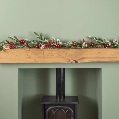 1.9m Christmas Frosted Pinecone Garland with Red Berries and Baubles