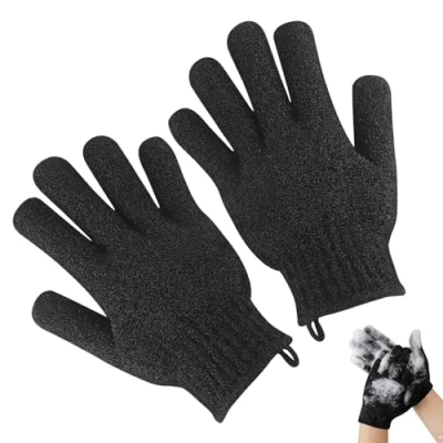 1 a Pair Exfoliating Gloves Bamboo Shower Bath and Body Exfoliator Mitts Scrubs Away Ingrown Hair Dead Skin for Shower, Spa, Massage Cell Remover Black