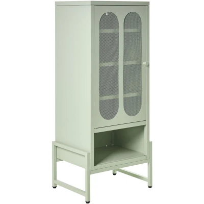 1 Door Sideboard Mint Green Steel Oval Perforated Doors 5 Shelves Ventilation Slots Leg Caps Home Office Furniture Industrial Design SOLETTA