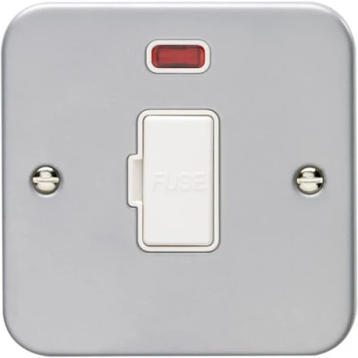 1 Gang 13A Unswitched Fuse Spur Neon Heavy Duty Metal CLAD Mains Isolation Plate Lighting Safety Wall Face