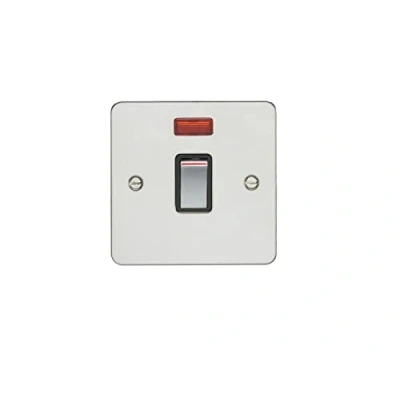 1 Gang 20Amp DP Switch with Neon Enhance Flat Polished Stainless Steel Plate Matching Rocker Black Trim