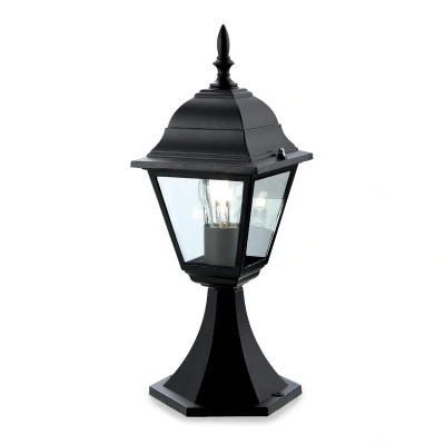 1 Light 4 Panel Lantern Pillar Black IP43, E27