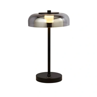 1 Light Led Table Lamp, Matt Black With Smoked Glass