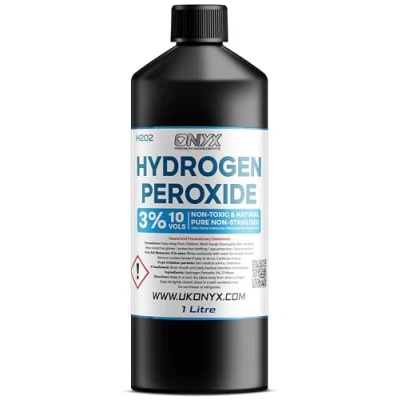 💧 100% Pure Food Grade – Onyx Hydrogen Peroxide 3% (10 Vols) is unstabilized, additive-free & safe for multi-purpose household and professional use. 🧽 Natural Multi-Purpose Cleaner – Effectively cleans surfaces, kitchens, bathrooms & more without harsh chemicals or toxic residues. 🌱 Eco-Friendly & Safe – Breaks down into water & oxygen, leaving no harmful by-products; ideal for conscious cleaning & green households. 🦠Powerful Mold & Mildew Remover – Targets stubborn mold, bacteria & odours naturally, ensuring a fresher, cleaner home environment. 🔬 Versatile Applications – Perfect for cleaning, sanitizing, gardening, laundry, oral care dilution & DIY uses; trusted by professionals.