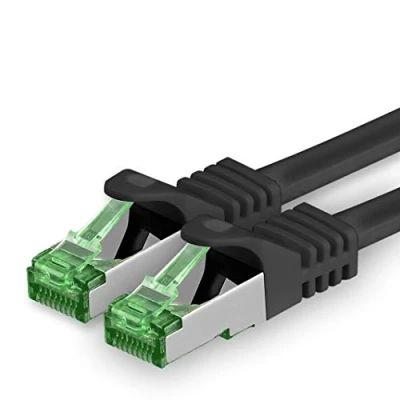 ✅ ULTRA-FAST SPEED: High transfer speeds of up to 10,000 Mbit/s for all internet speeds. Exactly what you need when gaming or online streaming ✅ Trouble-free: The Lan cable Cat 7 is an SFTP cable for low susceptibility to interference. The gold-plated contacts of the RJ45 connector prevent corrosion. ✅ HIGH QUALITY: Copper inner conductor, gold-plated contacts, LSZH compliant, solid workmanship, double shielding and a kink protection grommet. ✅ A REAL ALL-ROUNDER: The high-quality Ethernet cable is versatile and is suitable for connecting notebooks, laptops, computers, game consoles, DSL modems, switches, routers, network sockets or patch panels and for gigabit networks of 10, 100, 1000, 10000 Mbit s. ✅ HIGH COMPATIBILITY: The Cat 7 cable is backwards and forwards compatible with Cat5 Cat5e Cat6 Cat6a Cat8. Ideal for Gigabyte networks, online gaming, smart TV, smart home. ✅ READY TO USE: The network cable is pre-assembled with 2 x RJ45 connectors and can be used immediately. Plug in and get started.