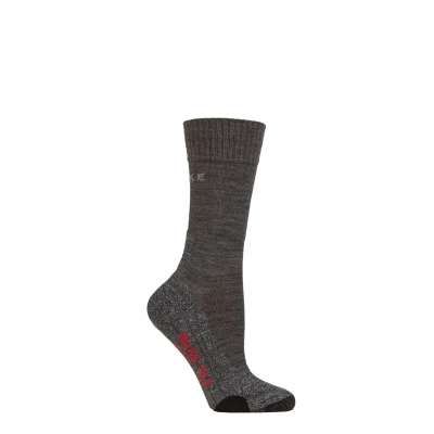 Made from odour-neutralising, breathable wool and functional yarn, these hiking socks for low mountain range keep your feet dry thanks to the 3-layer moisture-wicking sole construction The medium-thickness padding on the stress zones of these thermal socks for easy terrain offer you a high level of comfort; the flat toe seam prevents pressure points, friction and blisters Whether walking or hiking - these trekking socks offer you firm shoe contact and a high level of cushioning in hiking shoes (shoe categories A-B); we recommend the smaller size for intermediate sizes Special knitting techniques adapted to the gender and anatomical differences of the right and left foot ensure a high comfort, a wrinkle-free fit, a long durability and protect against pressure points The high-quality merino wool warms your feet in cold temperatures and cools them in warm temperatures; these all-season sport socks accompany you on your outdoor activities in all weather conditions FALKE, a family business founded in 1895, stands for unconditional quality, the highest craftsmanship, innovative and functional products with environnementally friendly packaging