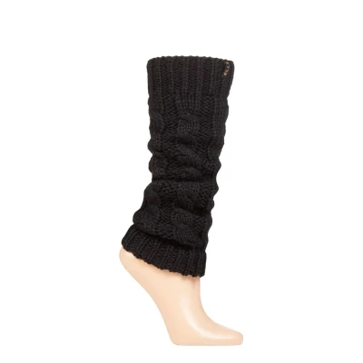 1 Pair Black 2 Chunky Cable Knit Leg Warmers Ladies One Size Elle
