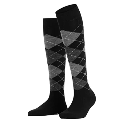 1 Pair Black / Grey Marylebone Argyle Wool Knee High Socks Ladies 3.5 7 Burlington