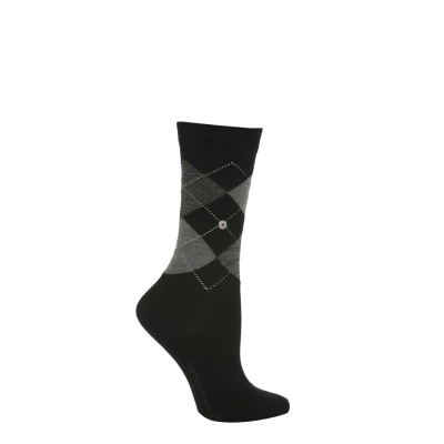 1 Pair Black / Grey Marylebone Argyle Wool Socks Ladies 3.5 7 Burlington