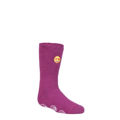 1 Pair Cerise Emoji Heart Face Slipper Socks Kids Unisex 9 12 (4 7 Years) Heat Holders