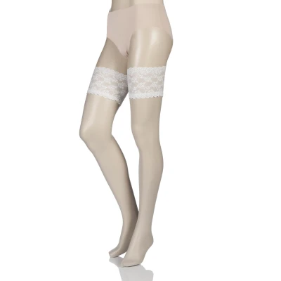 1 Pair Champagne 10 Denier Bridal Lace Top Hold Ups Ladies Medium Charnos
