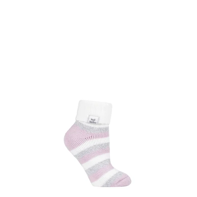 1 Pair Cream Sleep Rib Turn Over Cuff Socks Ladies 4 8 Heat Holders