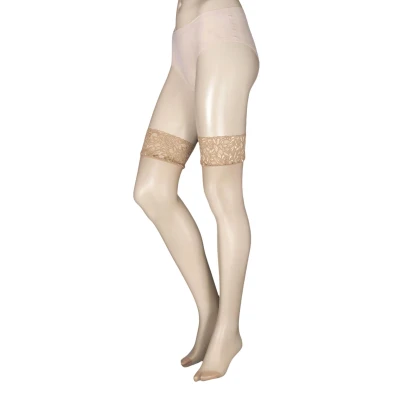 1 Pair Natural Tan 10 Denier Run Resist Lace Top Stockings Ladies Large Charnos