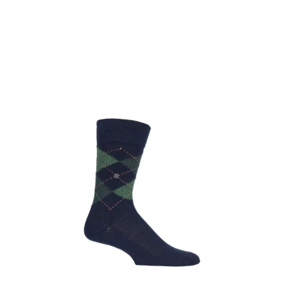 1 Pair Navy / Green Preston Extra Soft Feeling Argyle Socks Men's 6.5 11 Mens Burlington
