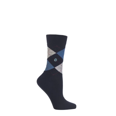 1 Pair Navy Marylebone Argyle Wool Socks Ladies 3.5 7 Burlington