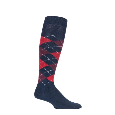 1 Pair Navy / Red Preston Soft Acrylic Knee High Socks Men's 6.5 11 Mens Burlington