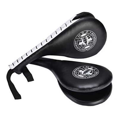 Quality Design: This Taekwondo Pads Target is used for Taekwondo (or other Martial Arts) fans to practice low and high kicks! The whole body is and flexibility.This double sides target is ideal design for practicing high and low kicks, Enhance your speed, accuracy and strength. Size:39cm x 19.5cm x 5cm/15.35in x 7.7in x 1.97in. Material: PU leather outside and high elastic compression sponge inside. built makes sure your legs are from injuries or skin irritation Double Kicking Pad Design: Double Sides Kicking Pad, which it consist of the two pieces target leaf. When you it there will be snapped sound which may interest your kids. Just grab the end strap, wrap it around your wrist and start training without worrying about the pad slipping of your hands Pad Training: Taekwondo Pad is applicable in batting practice of Taekwondo, martial art etc. With wrist strap to stop the pad from dropping Package Included: 1 Pair of Taekwondo Kicking Target Paddle. A great Halloween gift choice for your boys, grandson, husband who likes Tae Kwon Do Karate Kickboxing Training. Perfect for taekwondo fans or other martial arts exerciser to train