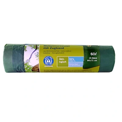 1 x 15 Secolan Mülleimerbeutel with Zugband 60 l Green