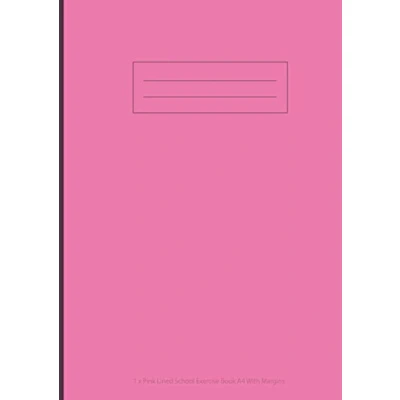1 x Pink Lined School Exercise Book A4 With Margins: Notebooks, 100 Page, Assorted Colours