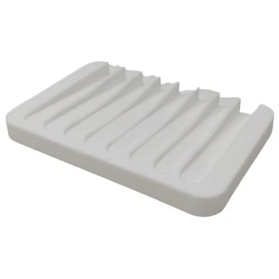 1 x Silicone Soap Dish for Bathroom, Kitchen or Shower [White] Size - 11.5x8x1cm The silicone material is easy to clean when not in use Angled design allows for excess water to drain away and avoid build-up As the soap dish is made from silicone it is flexible and won't break when dropped