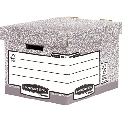 DURABLE - For secure storage of all your documents, these heavy-duty storage boxes are made from strong double thickness corrugated cardboard. ASSEMBLE WITH SPEED - Designed to save you time, the FastFold automatic assembly means you can build your archive boxes quickly and easily in as little as 4 seconds - saving you time over traditional manual storage boxes. IDEAL FOR STORING DOCUMENTS - Built for compatibility, these archive boxes accommodate A4 or foolscap/folio/legal transfer box files, lever arch files and suspension files. STACKABLE - Strength in engineering and high quality materials ensures that your system storage boxes can be stacked up to six units high, using space more efficiently and keeping you more organised. CARRY HANDLES - Handholes can be found on the sides of the storage box which are reinforced with 2 layers of double thickness corrugated board on the end panels which are glued together.