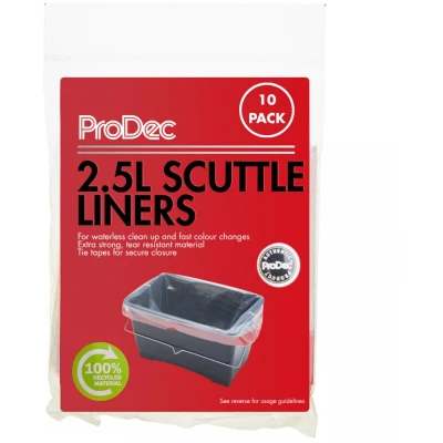 General description ProDec 2.5L Paint Scuttle Liners are designed for convenience and efficiency. This pack includes 10 disposable liners made from soft plastic, ensuring a snug fit for ProDec scuttles. They allow for quick and mess-free color changes, eliminating the need for washing between uses. Compatibility and accessories Designed to fit ProDec scuttles Usage Ideal for quick color changes Helps maintain cleanliness during painting projects