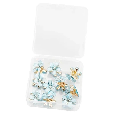 10 Pcs Mini Diamond Hair Claw Clips Small Flower Hairpins, Accessories, Sweet Barrettes, Styling Accessories (Blue)