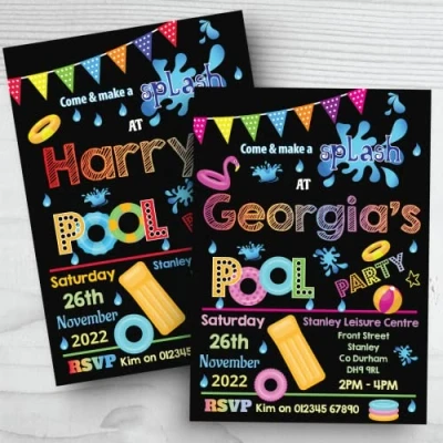 10 Personalised Birthday Invitations Swimming Pool Party Girl Boy + Envelopes