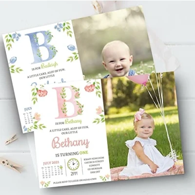 10 Personalised Kids Boy Girl 1st First Birthday Party PHOTO Invitations Invites