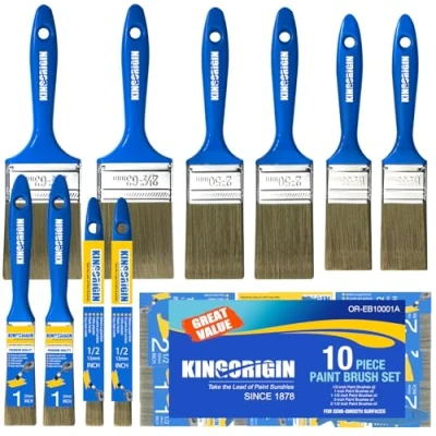 10 pack paint brush set includes 5 different sized paint brushes (0.5" 1" 1.5" 2" 2.5”) for all your painting needs No bristles falling out during painting for a hassle-free experience, the paint brush set work well with oil, latex, varnish, acrylic, gesso, etc Made of synthetic filament, this paint brush holds more paint ensuring a smooth, even application of paint Easy to clean and easy to use. The lightweight handle of paint brushes for walls provides extra comfort and ease to hold. Paint brushes bulk fit for all paint jobs. Perfect for painting walls, trim, cabinets, doors, fences, and decks, making it a versatile choice for various projects.