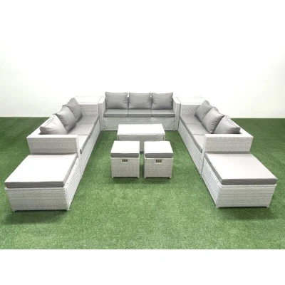 10 Pieces Rattan Garden Furniture Set Outdoor Sofa Coffee Table with 2 Side Tables 4 Footstools Light Grey Mixed Fimous