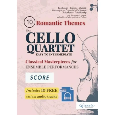 10 Romantic Themes for Cello Quartet Score with Free Audio Tracks: Easy to Intermediate Classical Masterpieces Ensemble Performances (10 & Parts)