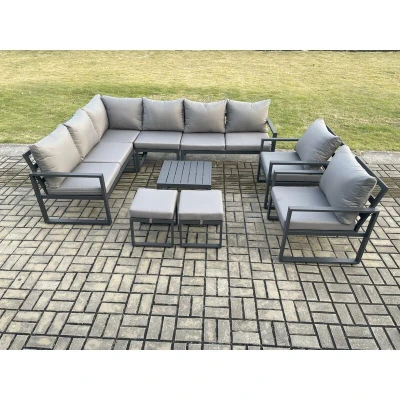 10 Seater Aluminium Garden Furniture Set Outdoor Lounge Corner Sofa 2 Pcs Chair Square Coffee Table Sets with Small Footstools Dark Grey Fimous
