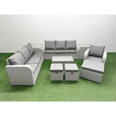 10 Seater Poly Rattan Outdoor Garden Furniture Sofa Set Patio 3 Reclining Chair Stools 2 Side Table Light Grey Fimous