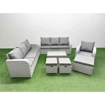 10 Seater Poly Rattan Outdoor Garden Furniture Sofa Set Patio 3 Reclining Chair Stools Light Grey Fimous