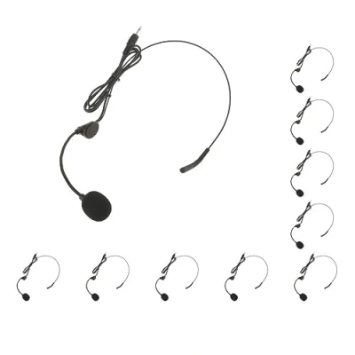 10 set of Ear Hook Omni Directional Boom Head Worn Microphone 3.5mm Straight Angle, Black